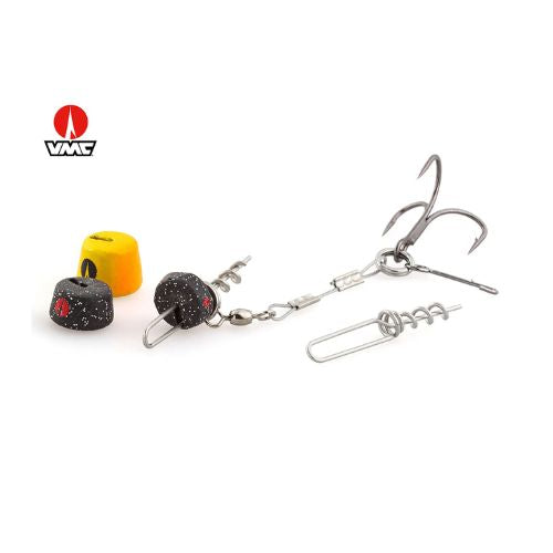 Das VMC Belly Pike Rig wurde speziell für das Angeln auf Hecht entwickelt. Es verfügt über einen starken Premium-Drilling, VMC Premium Heavy Duty Split Ringe, flexibles 49-fädiges Stahlvorfach mit 60 lb. Tragkraft und die VMC-exklusiven Spikepins zur Befestigung am Gummiköder. Das Belly Pike Rig ist mit einem hochwertigen Wirbel verbunden, um Hebelwirkungen während des Drills zu vermeiden. Das Set enthält drei Gewichte (5g, 10g und 15g) und eine zusätzliche Pike Screw (Größe M). Das VMC Belly Pike Rig ist ideal für 12 - 18 cm lange Gummifische.